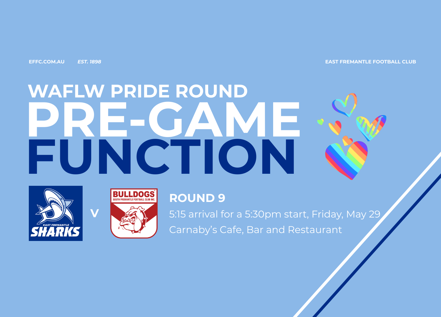 Join the East Fremantle Football Club for our pre-game function ahead of the biggest match in the WAFLW calendar – the Fremantle Derby!