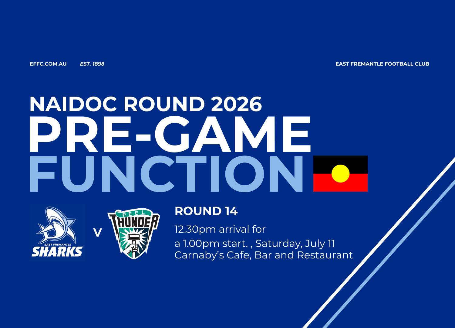 Join the East Fremantle Football Club for our President’s Function and celebration of NAIDOC round ahead of our Round 14 clash against Peel.